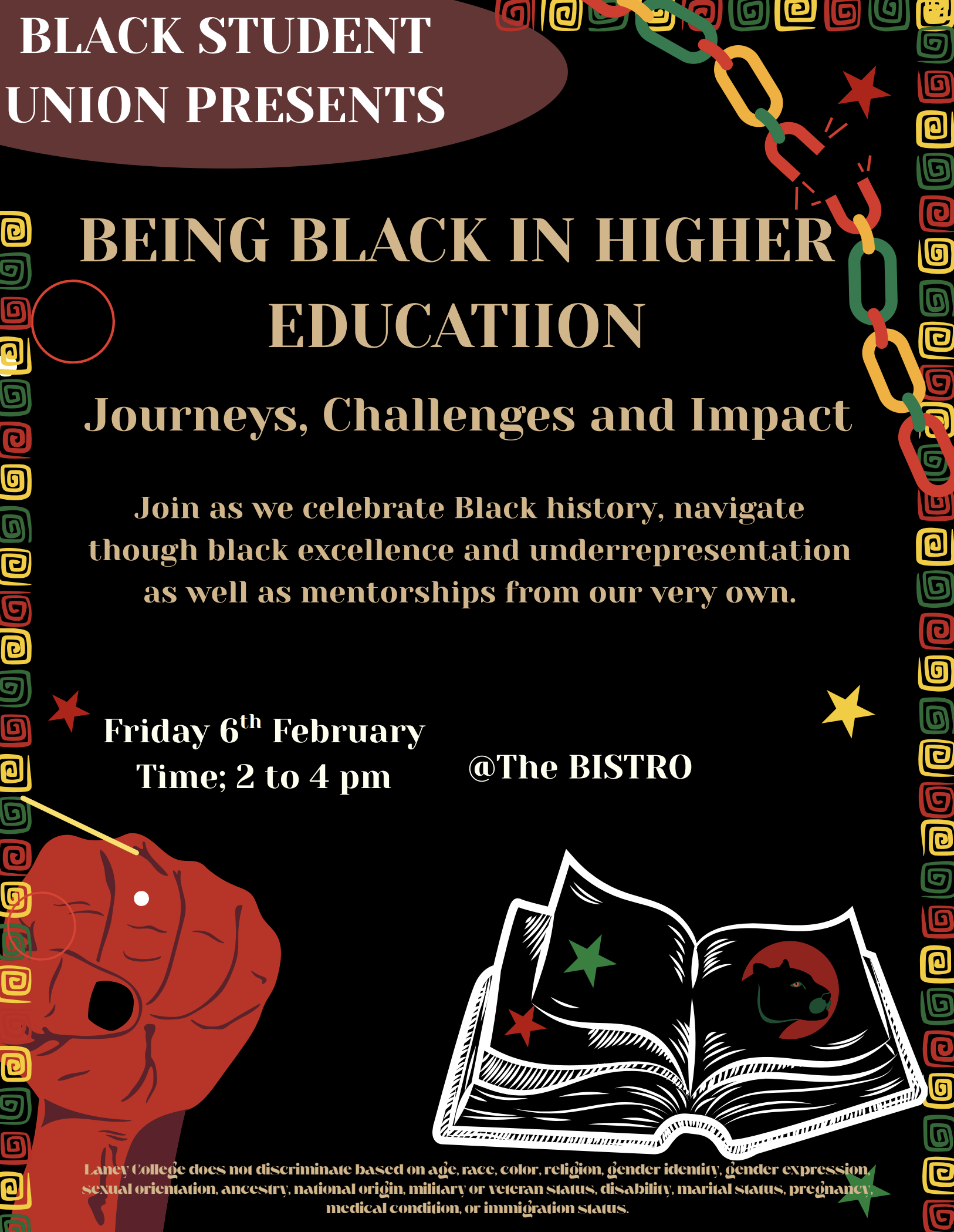 oin the Black Student Union for a powerful Black History Month conversation: Being Black in Higher Education—Journeys, Challenges & Impact.