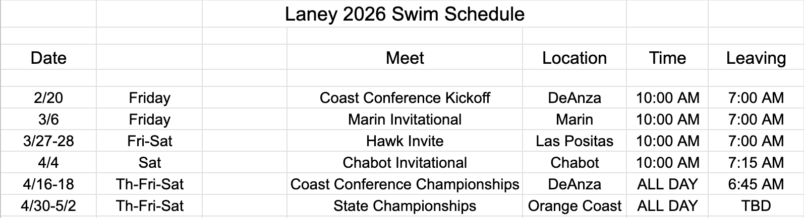 Laney’s Swim & Dive team supports student-athletes in achieving both academic and athletic success. We welcome swimmers from intermediate to advanced levels, focusing on personal growth, teamwork, and excellence in and out of the pool.